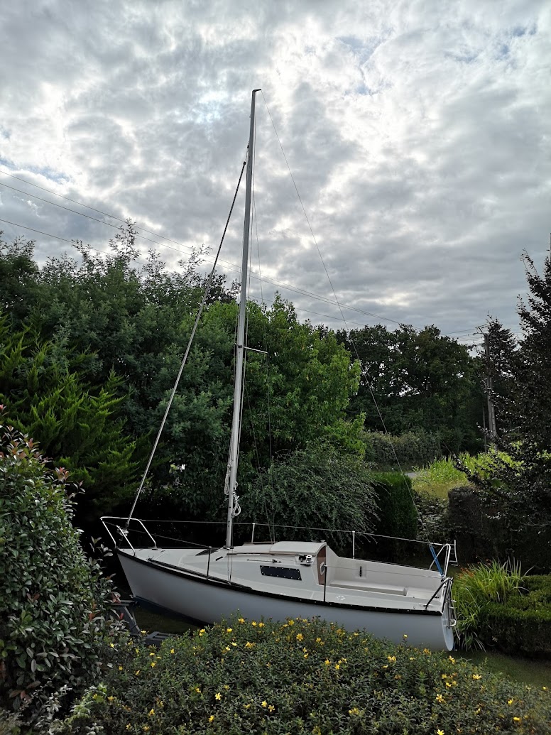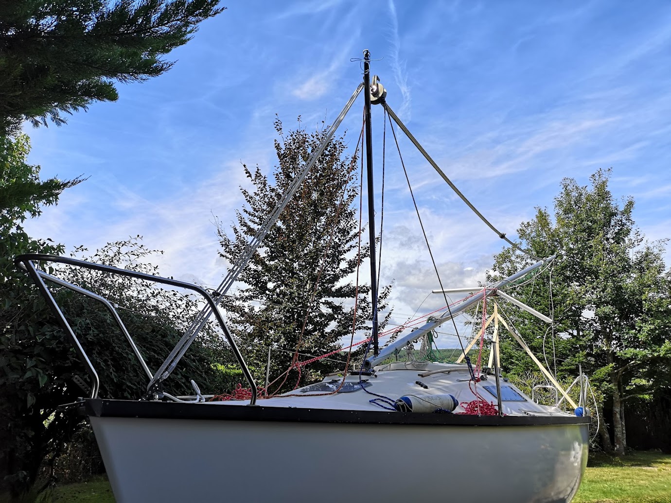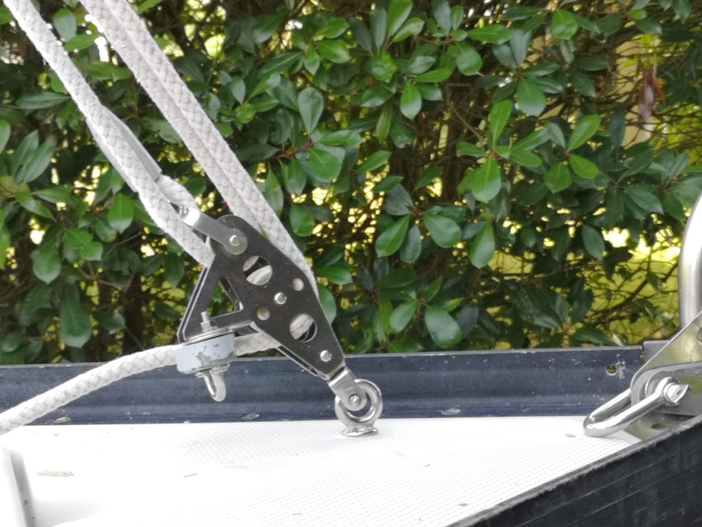 Sur le devant du mat, j'ai fixé un pontet inox (diamètre 6), sur lequel j'attache le tangon (avec un morceau de chambre à air pour protéger).