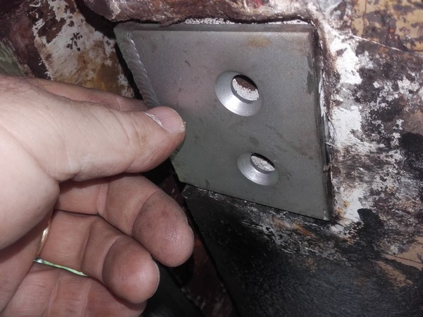 les vis sont enfilées après avoir rempli les trous avec du silicone "marine"