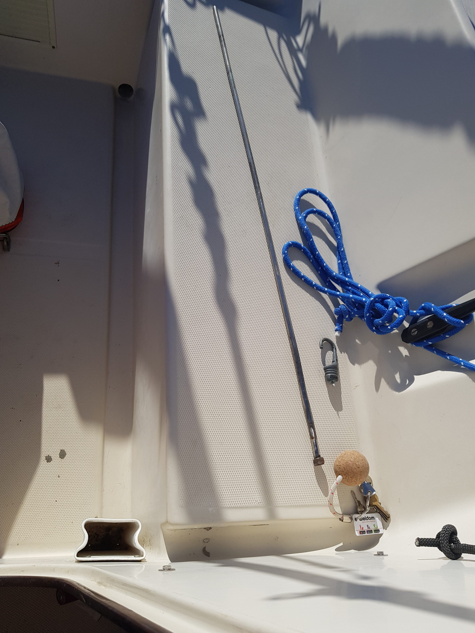 | Axe métallique reliant les ferrures de safran et tableau arrière (femelots) |