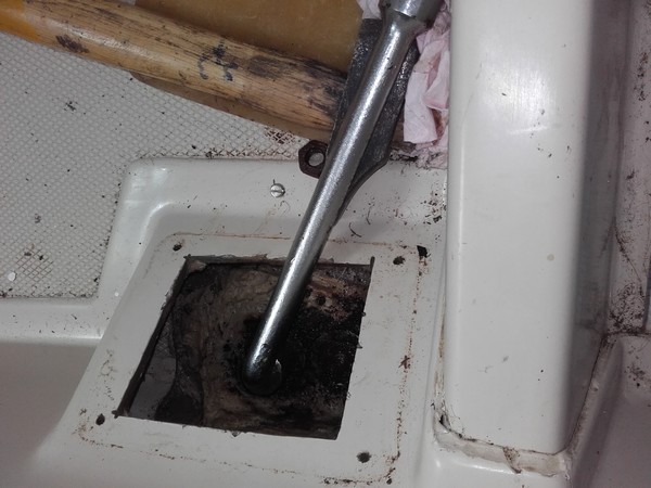en ayant bloqué l'écrou dans la trappe avec une clé a pipe
