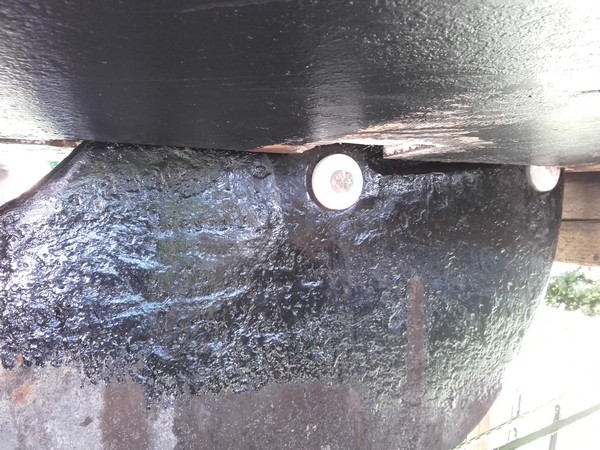 les vis sont enfilées après avoir rempli les trous avec du silicone "marine"
