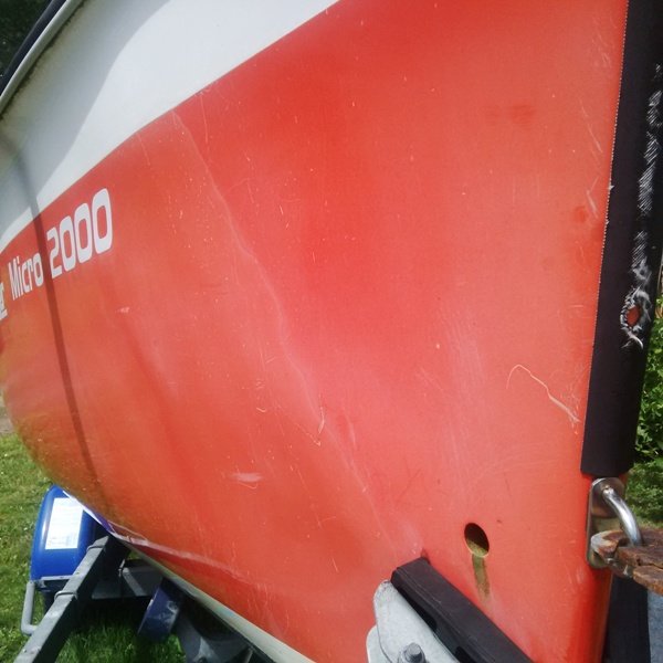 * Si le mat est couché, j'enfile l'aiguille en tube pvc par le pied de mat (vis démontables et non rivets !). Elle comporte 50 cm de garcette fine en haut, crochetable par la sortie de drisse, qui serviront à attacher la nouvelle drisse entraînée par le retrait de cette aiguille.