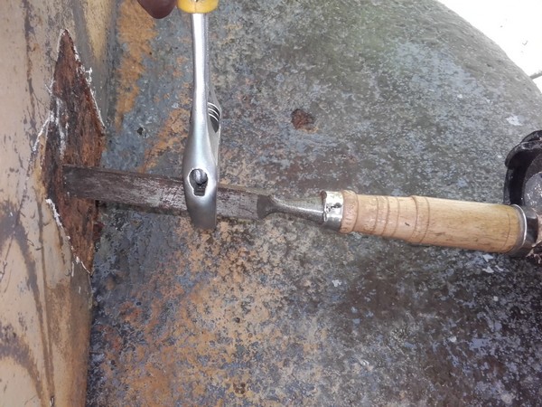 j'ai viré la rouille qui s'était entassée par couches, j'ai été obligé d'utiliser un burineur.