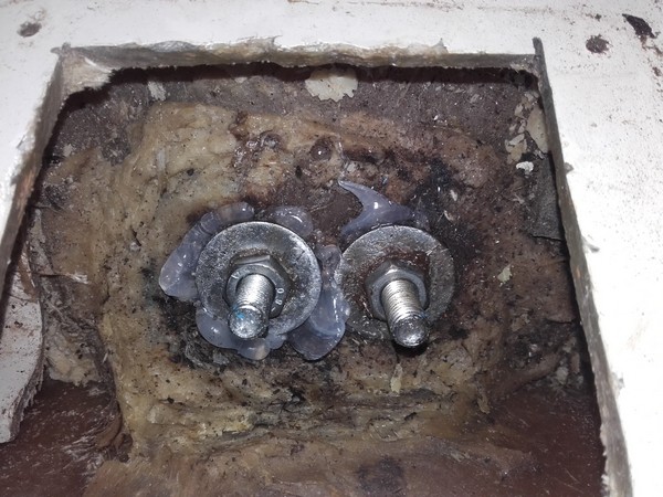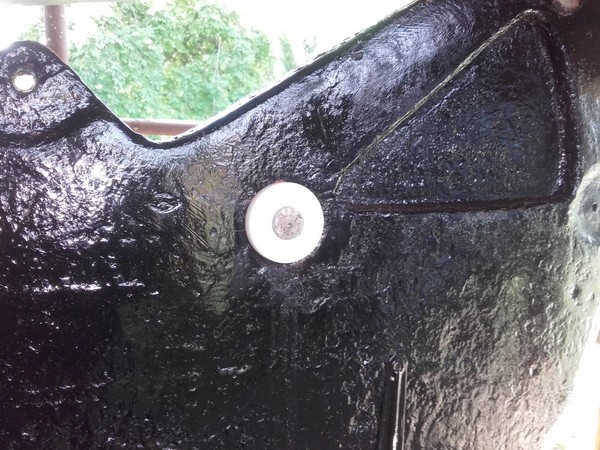 les vis sont enfilées après avoir rempli les trous avec du silicone "marine"