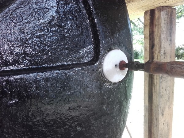 Bloquer la vis sous la coque (tout seul j'ai utilisé un cric et un ciseau a bois tenu en pression)