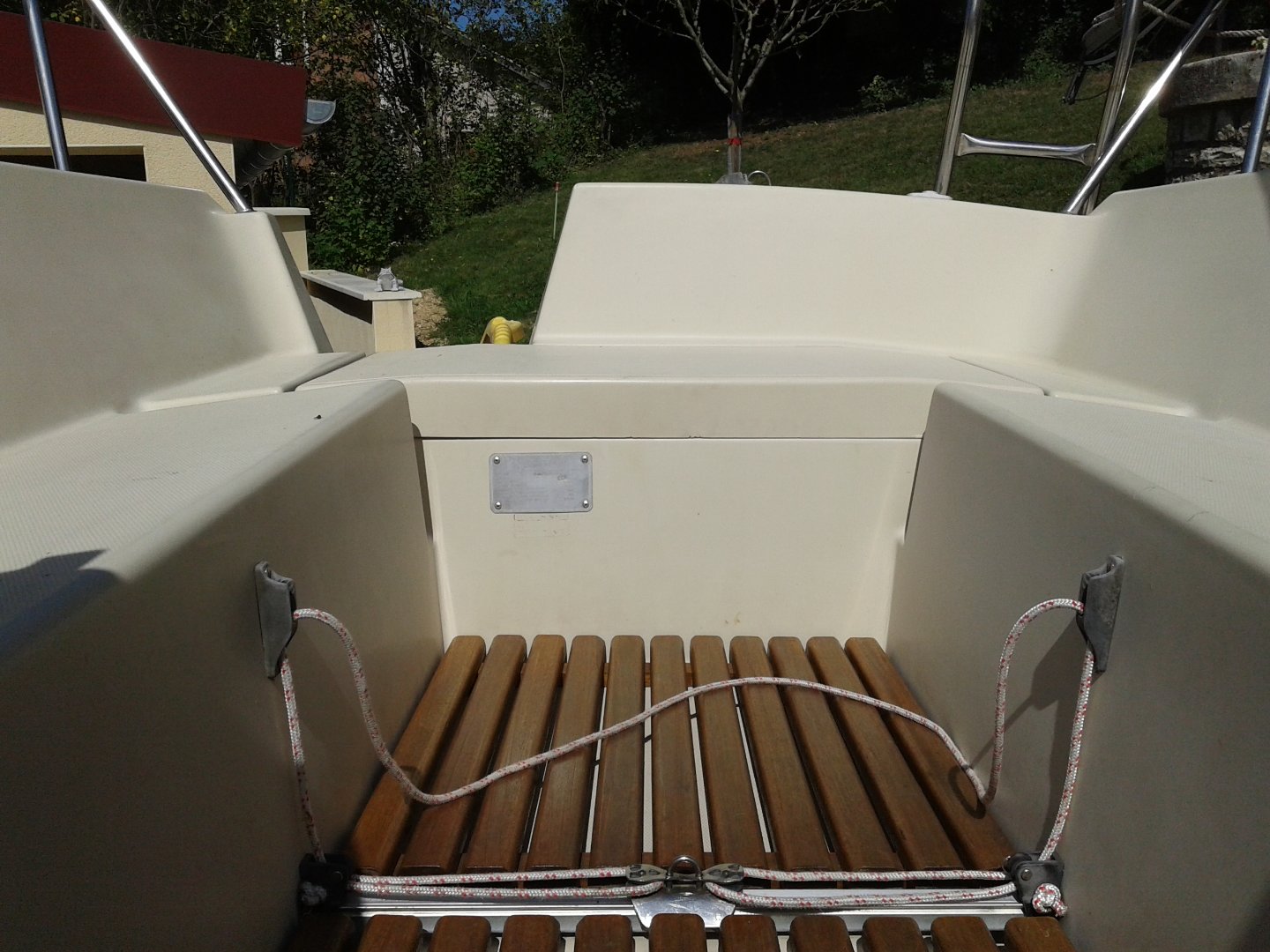 sur le plancher du cockpit,et sur le tableau ar a l emplacement du moteur s ait se qui m inquiète le plus !enfin voila je vais détailler tout sa dans les bonne rubrique ! s ait mon premier bateau et je ne métrise pas toute les technique de réparation surtout celle du gelcoat !pour les équipets je pense qu il ne son pas d origine pas de trace de découpe ,si j en trouve d origine je les remplace .